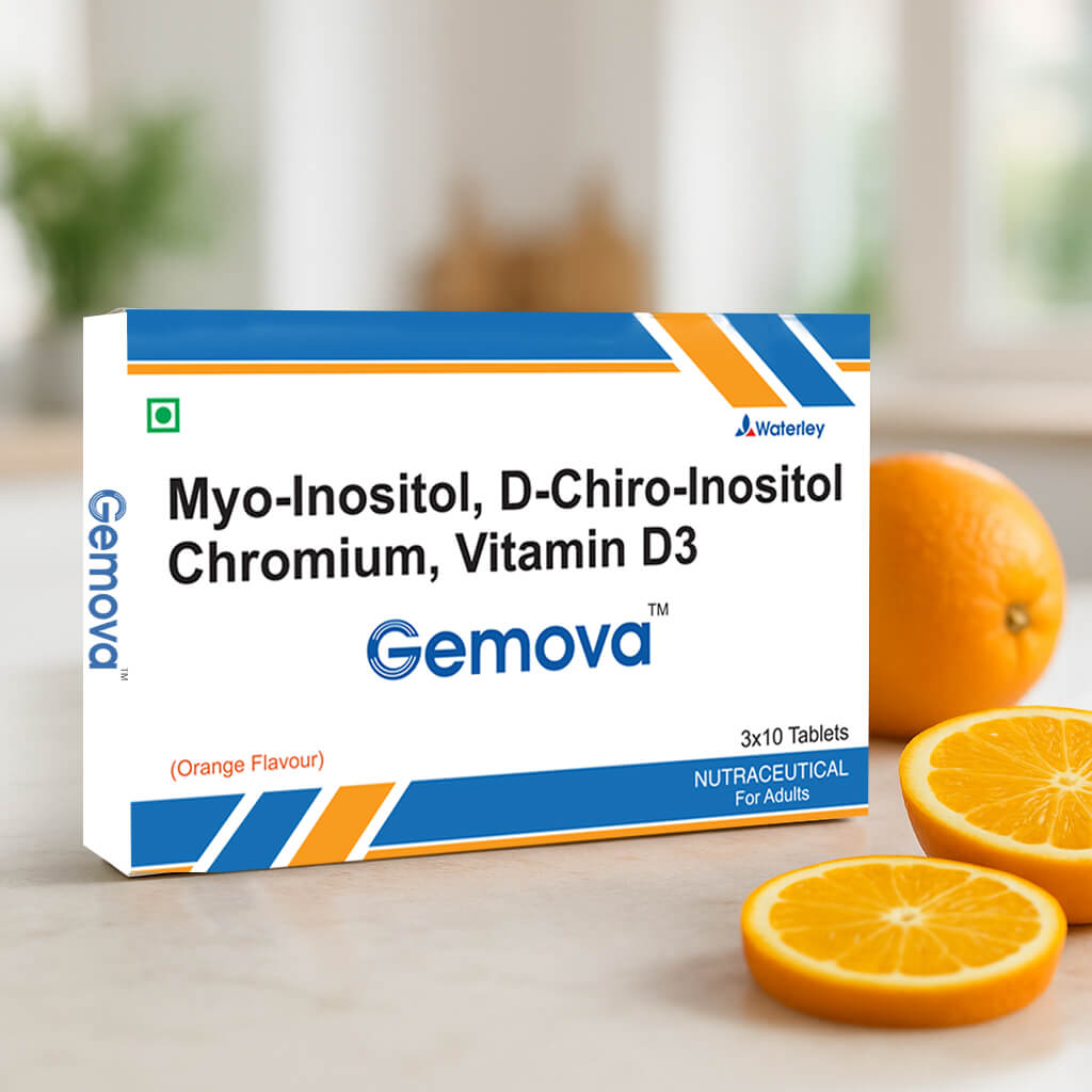 Gemova chewable tablets combine the ideal synergy of Myo-Inositol, D-Chiro-Inositol, Chromium Picolinate, and Vitamin D3 to offer a comprehensive approach to managing Polycystic Ovary Syndrome (PCOS), metabolic issues, and fertility concerns. This advanced formulation supports ovulation, improves insulin sensitivity, regulates blood sugar levels, and enhances hormonal balance, contributing to better fertility outcomes. With natural ingredients ensuring superior tolerability and minimal side effects, Gemova also promotes bone health and immunity, providing holistic support for women dealing with PCOS and related metabolic challenges.