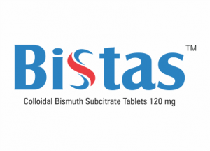 BISTAS (Colloidal Bismuth Subcitrate Tablets) is a bismuth-based anti-ulcer drug used in combination with antibiotics and a proton pump inhibitor to eradicate H. pylori infection of the human gastric mucosa.