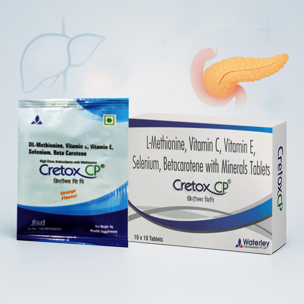 Cretox CP is used to relieve pain in Acute and Chronic Pancreatitis. Cretox CP is an effective antioxidant formulation containing Methionine, Beta-Carotene, Vitamins and Micronutrients. It reduces oxidative stress and damage occurring due to free radicals. Cretox CP improves the quality of life by relieving pancreatic pain. Cretox CP helps correct vitamin and micronutrient deficiency, reduces the incidence of Chronic Pancreatitis and related disorders and is also effective in Alcoholic Pancreatitis.