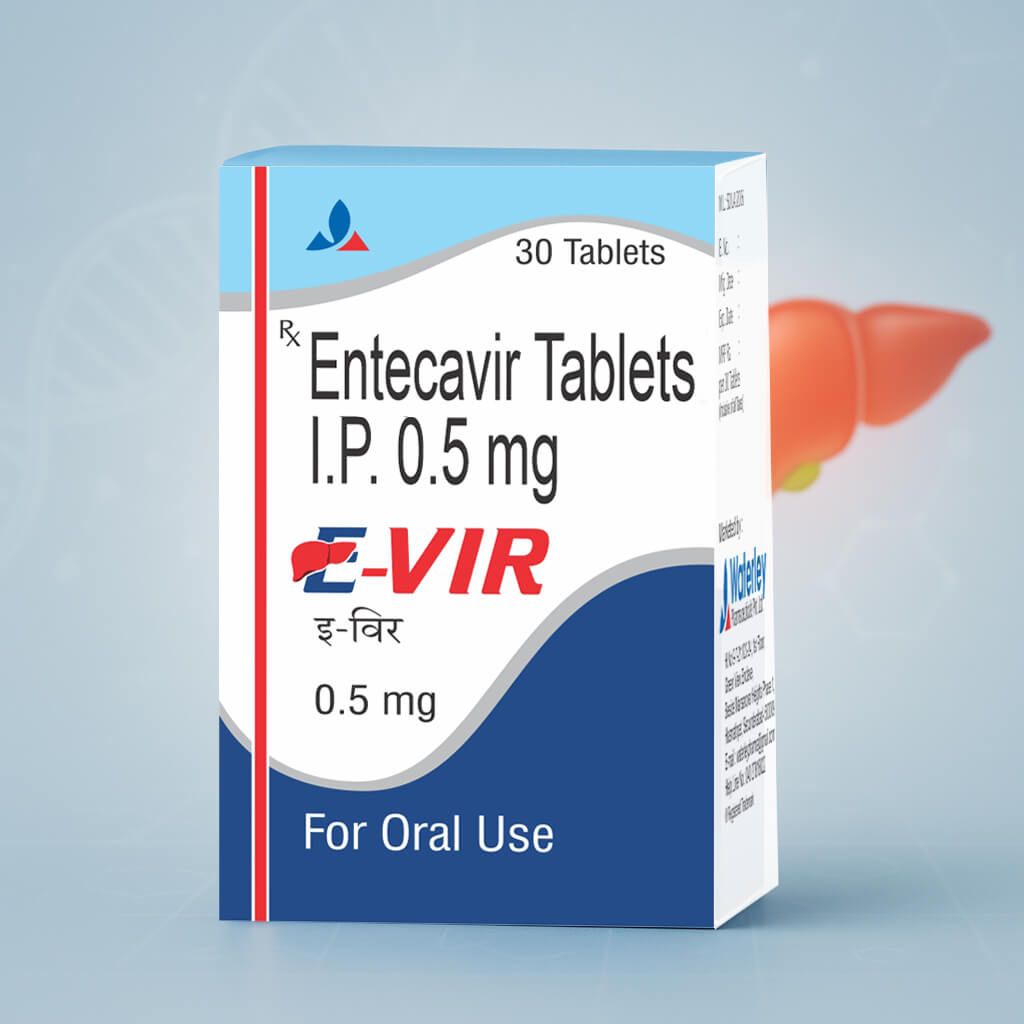 Entecavir 0.5mg tablet is used to treat chronic (long-term) hepatitis B infection (swelling of the liver caused by a virus) in people who have liver damage. Entecavir is in a class of medications called nucleoside analogs. E-VIR helps to improve the quality of life by preventing progression of the disease to Cirrhosis, Decompensated Cirrhosis, End-Stage Liver Disease. This is achieved by suppression of Hepatitis B virus in a sustained manner.